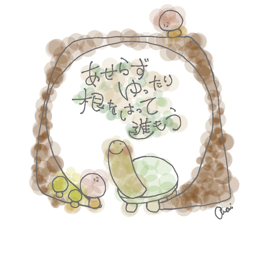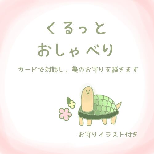くるっとおしゃべりでは、あなたの自身や勇気を呼び起こすカードリーディングとその後のおしゃべりをします。そのおしゃべりの中で最も象徴的なキーワードを元に亀のイラストを描きます。